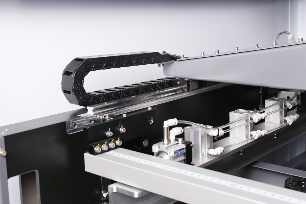 Các thanh dẫn hướng trên dầm ngang bên trái và bên phải sử dụng các thanh dẫn hướng tuyến tính có độ chính xác cao, đảm bảo không có độ rơ trước sau khi khóa.