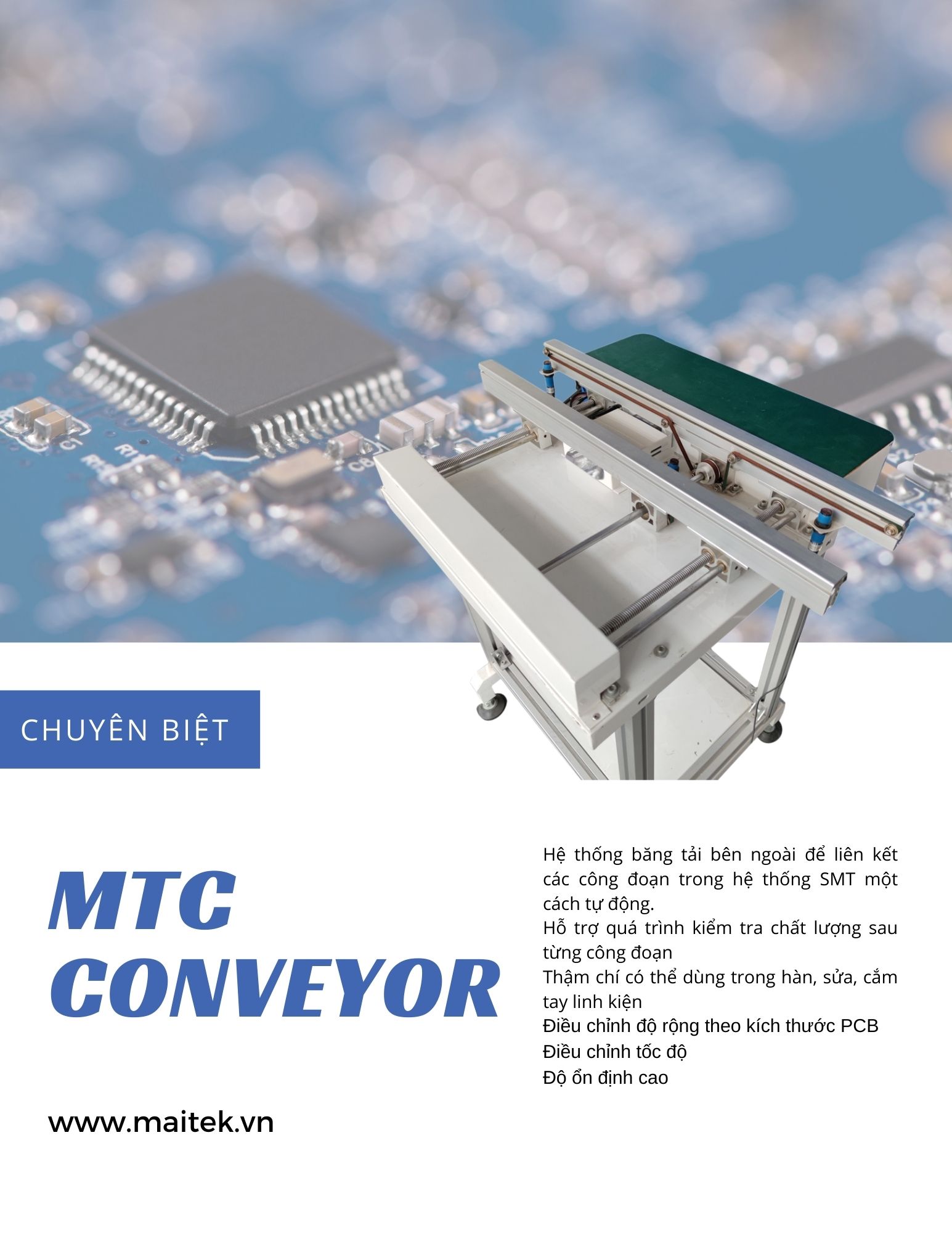 MAITEK Co., cung cấp các hệ thống băng tải tự động trong dây chuyền sản xuất SMT